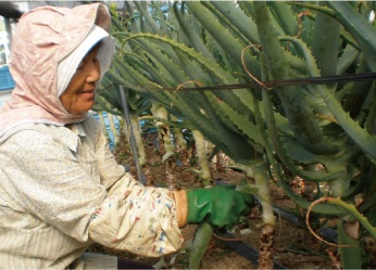 平成7年(2019年)に、高知県の契約農家と協力し、有機質肥料を使用した完全無農薬によるキダチアロエの栽培を開始しました。
